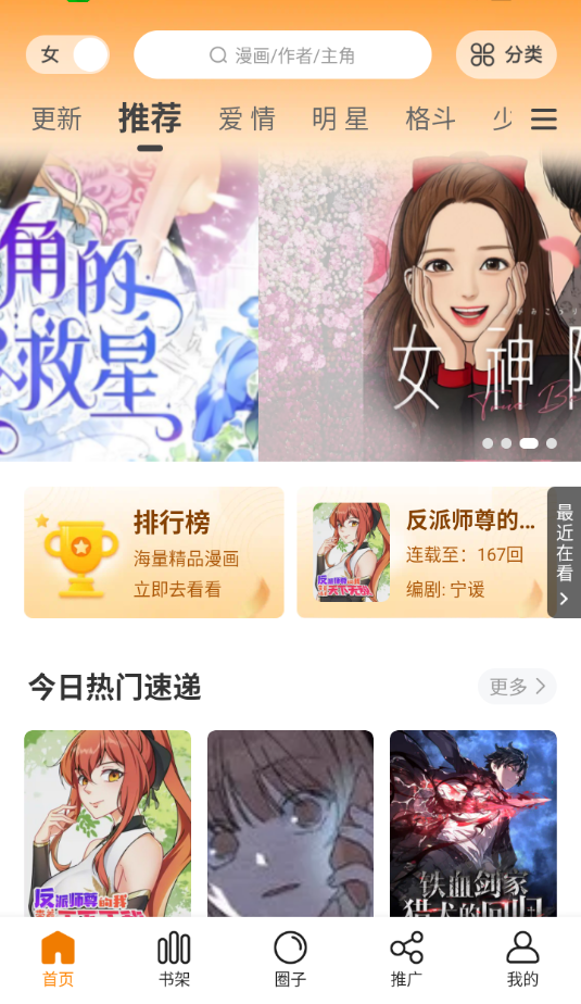 2、在软件首页会更新最新的漫画以及最热门的漫画资源。