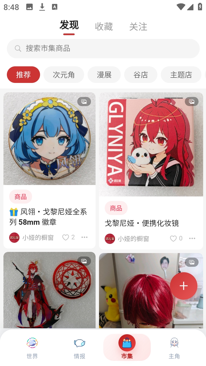 2. 提供市集功能,可购买或售卖谷子吧唧等,还支持多种便捷登录方式,且用户看到的动态均来自真实关注对象或高质量创作。