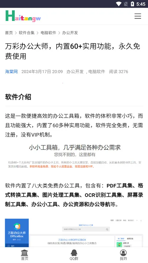 海棠网是简单好用的软件分享神器,有大量资源文章可在线阅读。设有强大搜索引擎,聚合视频小说等各类资源。页面清晰,更新快。能通过分类找软件,功能实用,资源全且无广告,还有个性化推荐。