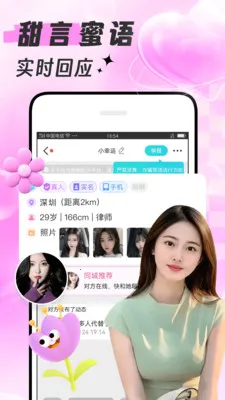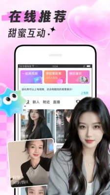 附近甜爱是线上聊天互动平台,有视频互动、语音聊天等功能。能精准匹配,解决社交局限,智能推荐适合的人,还可分享动态、看佳人视频,让你随时随地与海量真实有趣用户开心畅聊,告别孤单。