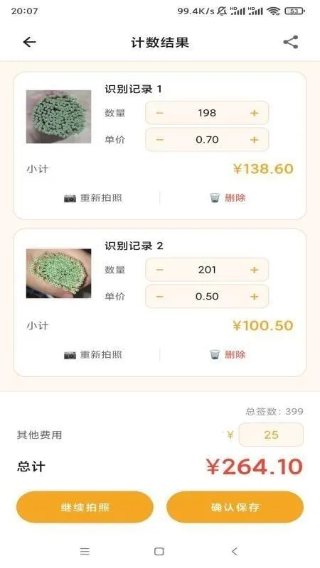 1用户能对签头拍照识别,轻松计数。