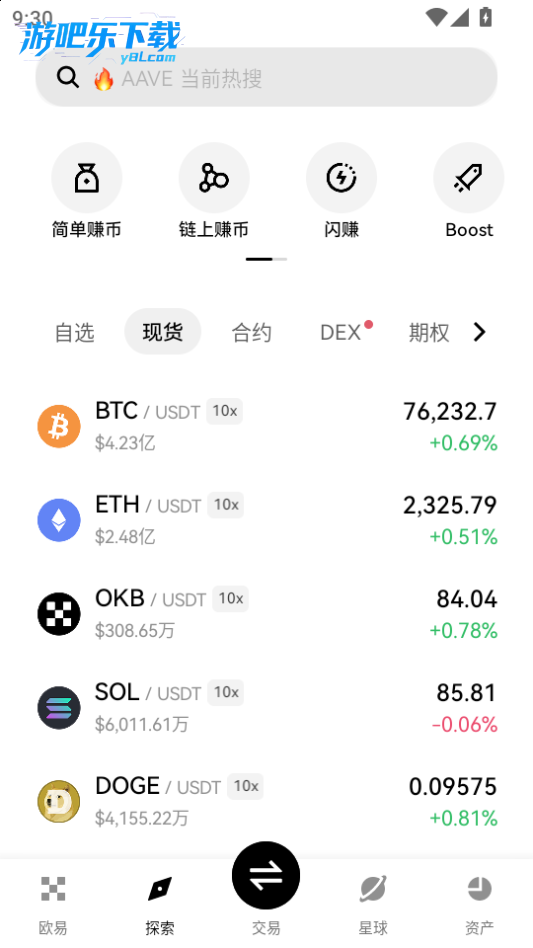 下载进入欧翼交易所软件,点击探索