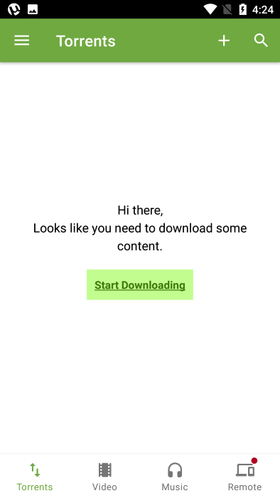 1、打开uTorrent App,点击上方【+号】