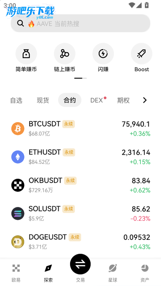 下载进入噢意交易所软件,点击星球