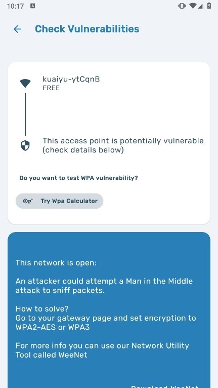 根据检查结果,如果发现网络存在安全漏洞,您可能需要更改Wi-Fi密码或禁用WPS功能以增强安全性。