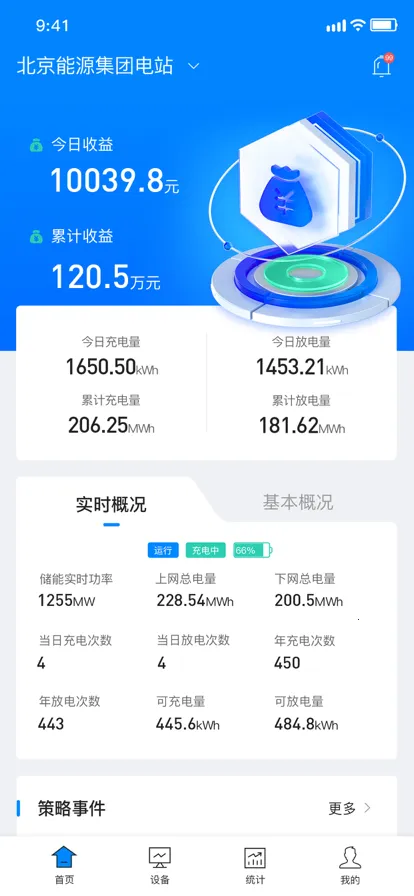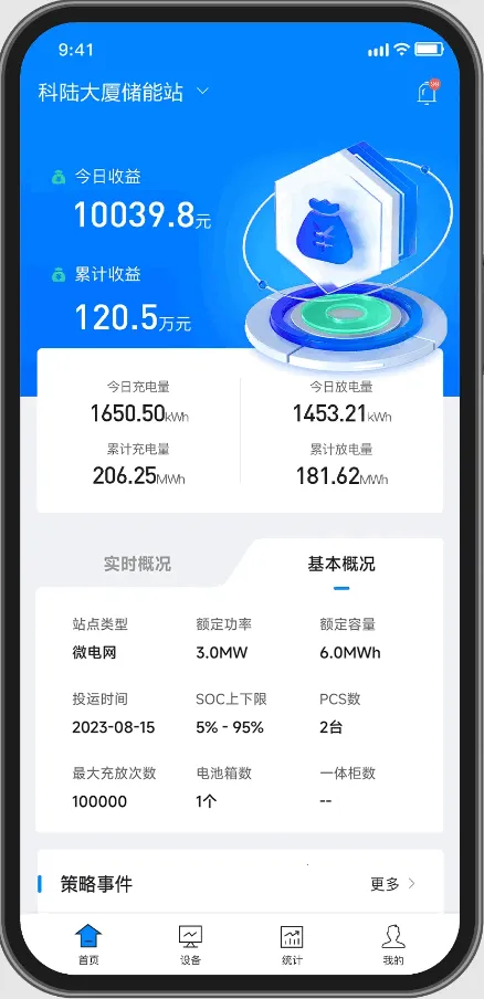 科陆智慧储能最新版本2026,在设备监控交互体验上有所优化。能实时监控站点运行及设备状态,通过统计图表对充放电量等信息进行统计分析,还可集中管理多个储能站点,提高效率。当设备出现异常时会立即发送告警通知,为储能电站管理提供有力支持。