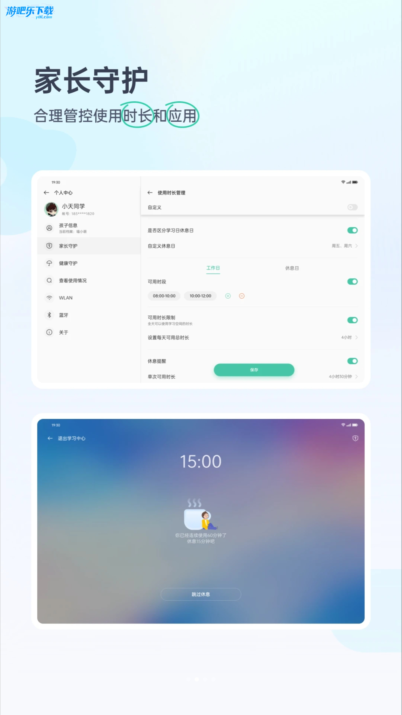 若平板用于多个孩子,可保留学习空间,通过切换账号管理