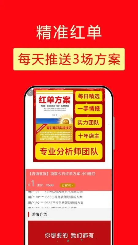 精准红单2026官方最新版本是为足球爱好者打造的服务平台,能提供赛事专家方案分享与核心数据情报。新人每天准时推送3场方案,助选单不迷路,且新版更新了首页。