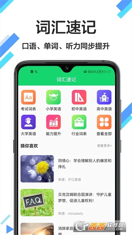 1、支持英汉翻译日常用语查询美文赏析及词汇练习