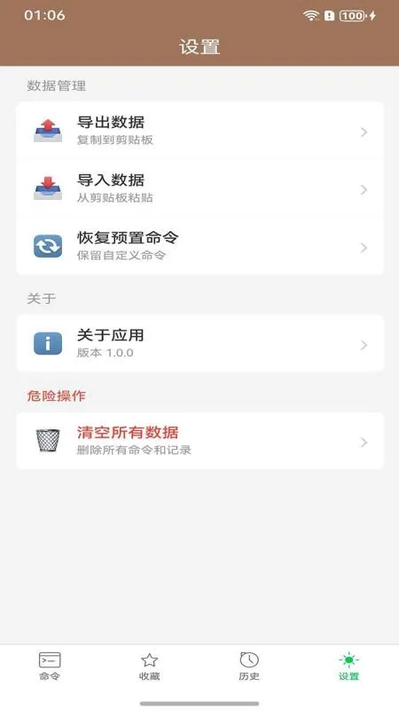 1、下载安装并打开应用,进入主界面后默认展示全部命令列表,顶部可切换不同功能分类。