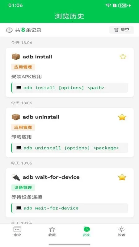 4. 支持将常用命令添加至收藏,收藏无数量限制,可在收藏页快速调取。