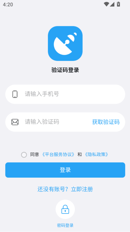 输入手机号验证码密码即可注册