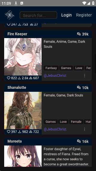 Chub 就是全球最大的角色卡库(超 18 万张),你可以直接用别人做好的角色聊天,也能自己做、导出、导入到其他软件(如 SillyTavern)。