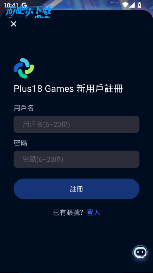 输入用户名和密码即可注册