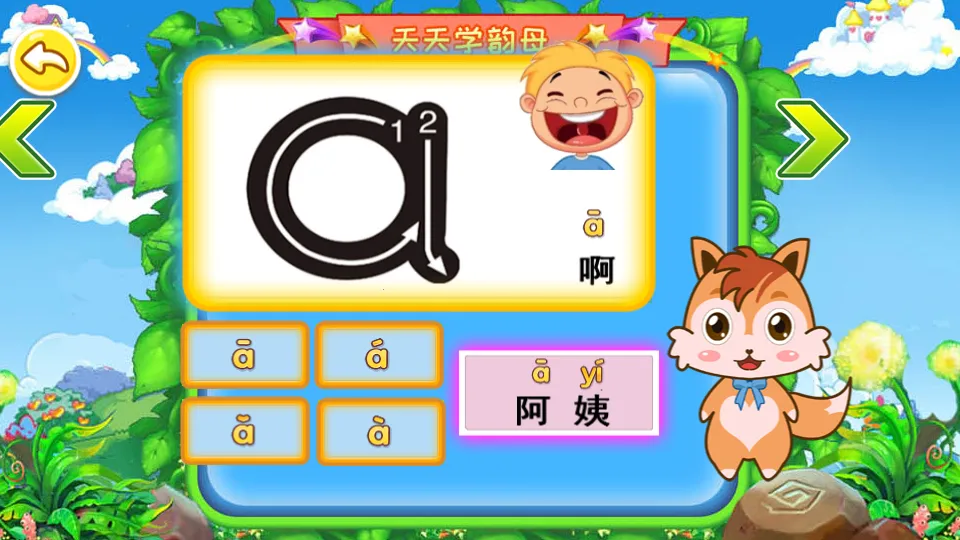 儿童拼音王国2026官方最新版本是儿童学习拼音和汉字的得力助手。寓教于乐,融合拼音笔顺等,通过图形卡片助孩子掌握发音。有学习、测试模式,新版优化了词组与细节,助孩子打好语言基础,开启自主学习。