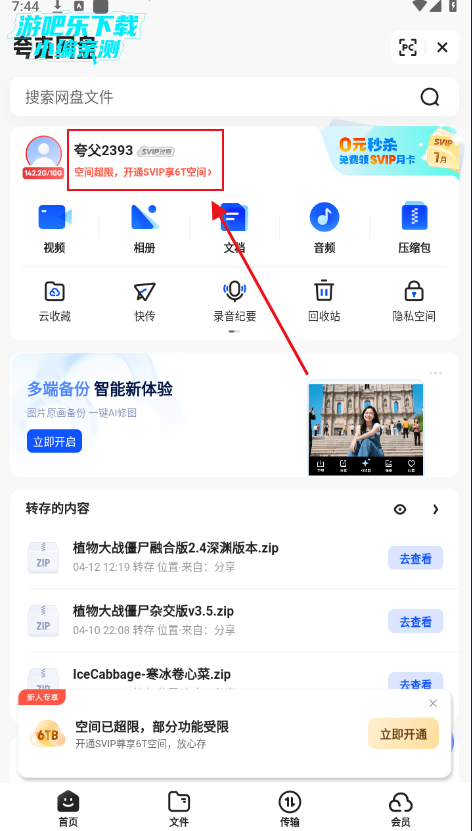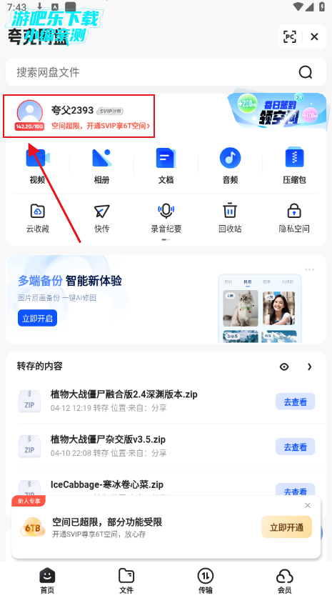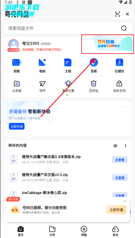 夸克网盘提供全方位的云存储解决方案,支持文件上传下载、多端同步、智能管理等功能。用户可在手机、电脑、平板等多设备间无缝切换,实现文件的实时同步与访问。最高提供6TB存储空间,新注册用户可享1TB永久免费空间,彻底解决存储空间不足问题。