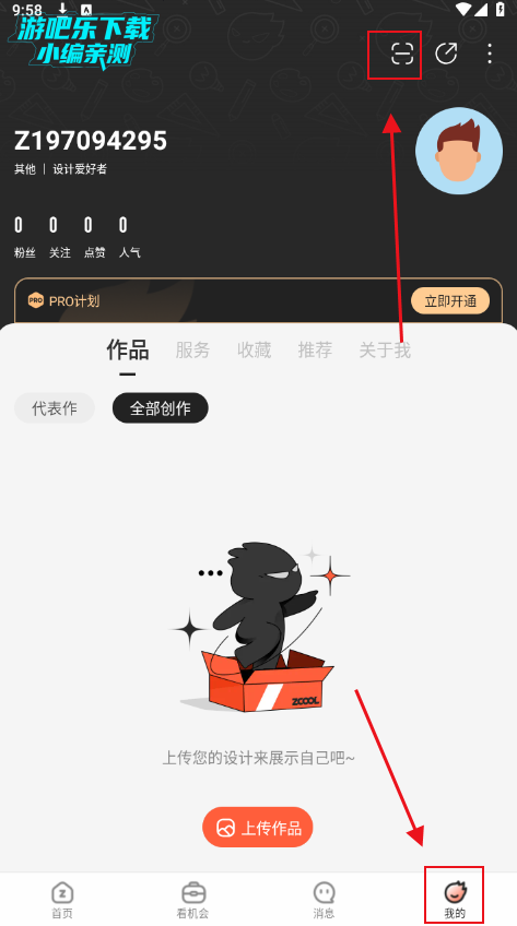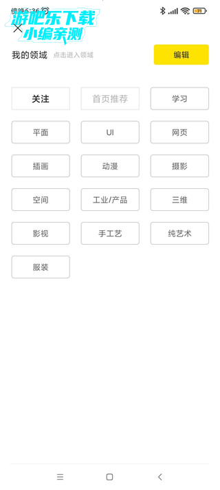 1、在本站下载并安装站酷app官方版,进入软件首页可以查看关注,首页推荐学习和平面;