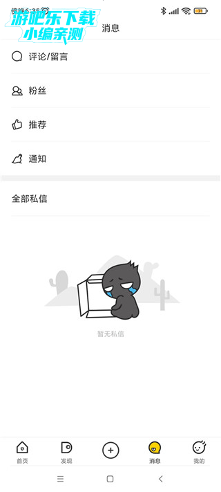 4、消息界面可以查看评论留言,新增粉丝和通知等内容;