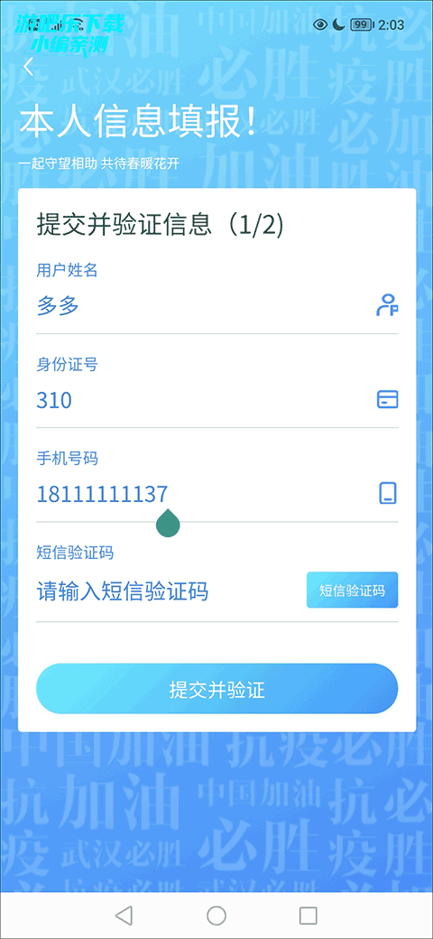 2、在这里先要填写好自己的个人信息进行认证,填写完毕后找到并点击“提交并验证”功能选项;