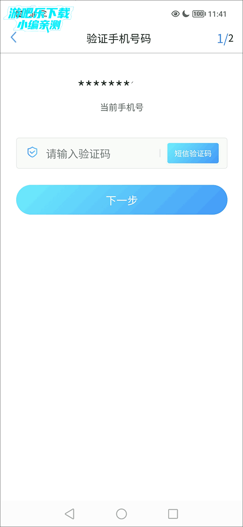 4、在验证手机号码界面找到并点击“短信验证码”功能选项,在输入了短信验证码后点击“下一步”按钮;