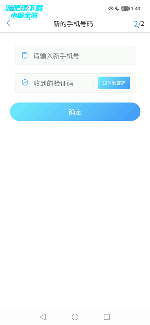 5、接着,在新的手机号码界面输入新的手机号码后找到并点击“短信验证码”功能选项,在输入了短信验证码后继续点击确定按钮就可以完成修改手机号了。