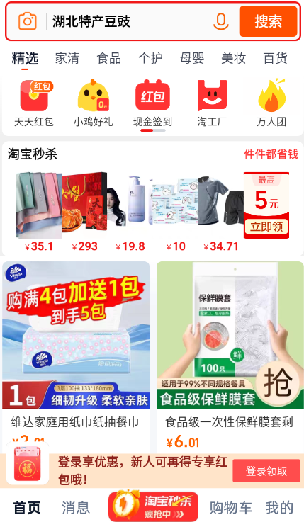 2. 搜索好商品,首单礼金叠加红包更便宜