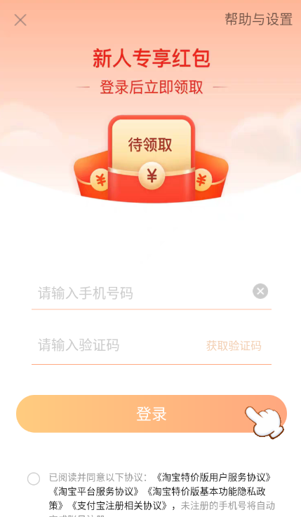 首先登录你的淘宝账号,如果没有用过淘宝的话需要先注册,目前淘宝特价版暂时不支持个人用户入驻,只能是企业用户才可以入驻。