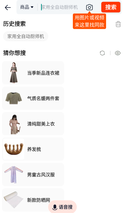 3、对于商品众多的问题,用户还可以通过搜索的方式来发现喜欢的商品;