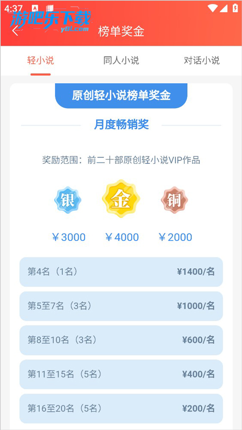 符合条件的轻小说签约作品每月可获得300元全勤奖。