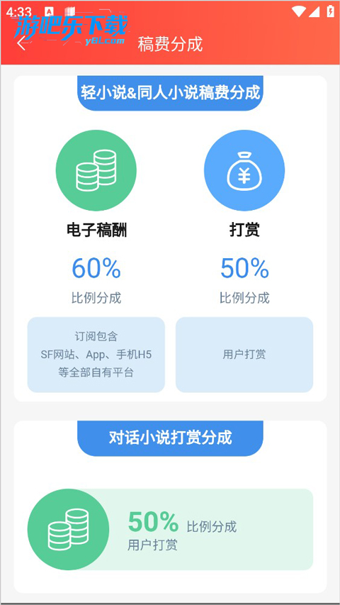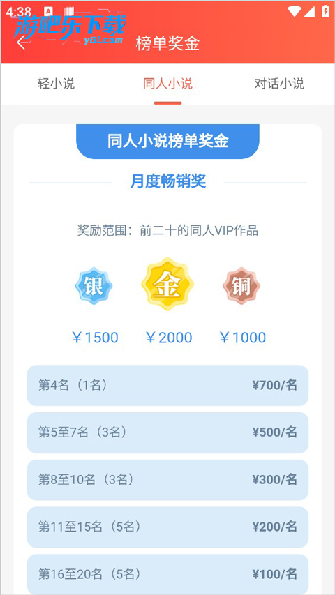 符合条件的同人小说签约作品每月可获得300元全勤奖。