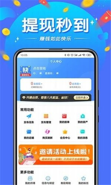 2、下载注册简单,只需手机号进行认证即可,还可在平台内收徒。