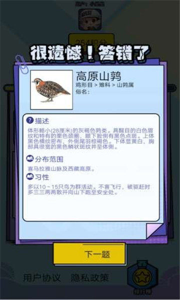 根据鸟类的知识点出的一些题目,答对了的话还可以领取答题奖励