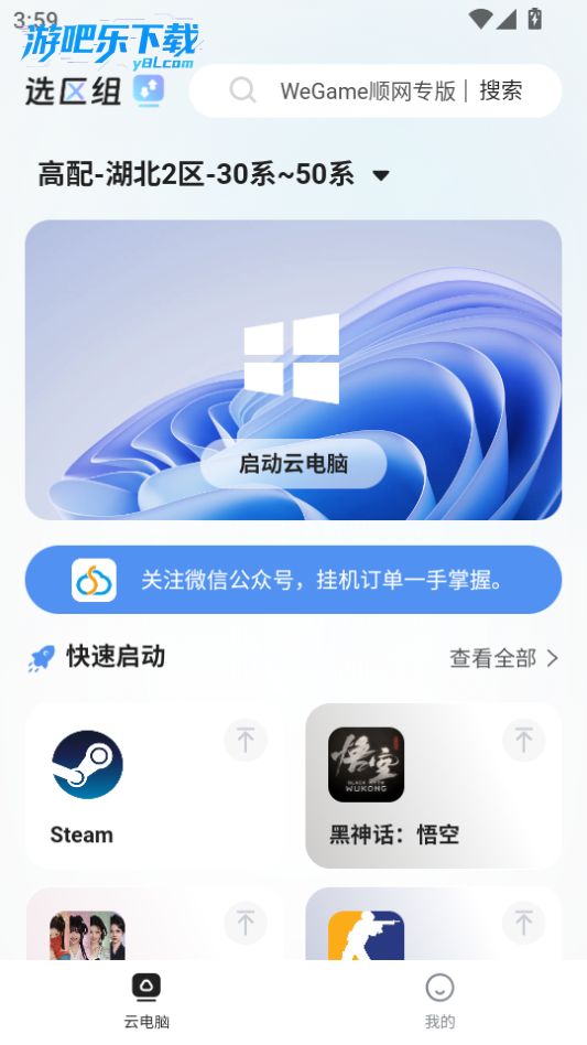 下载进入顺网云电脑软件,这里可以快速启动各种平台