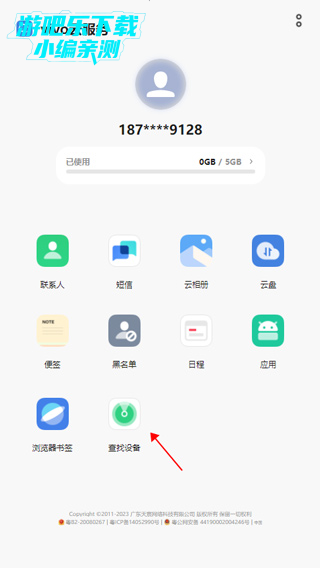 5、如果你丢失设备后,您可以访问vivo云服务网站: cloud.vivo.com对设备进行定位、锁定屏幕、数据备份或者清除设备数据等操作。