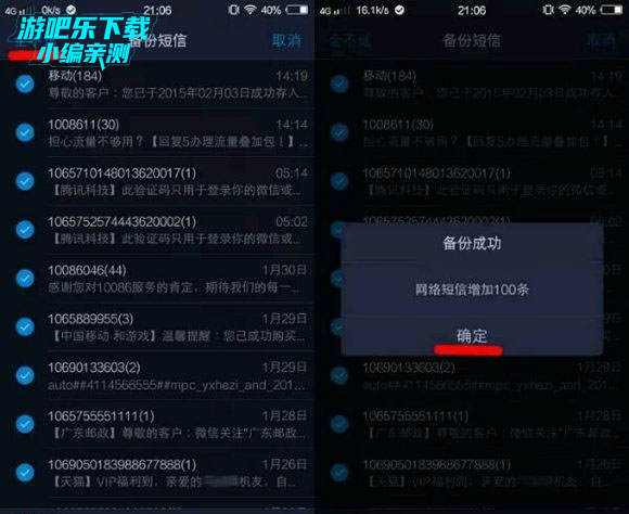 ②选择要备份的短信或者全选(打勾表示选中),上传完成后点确定