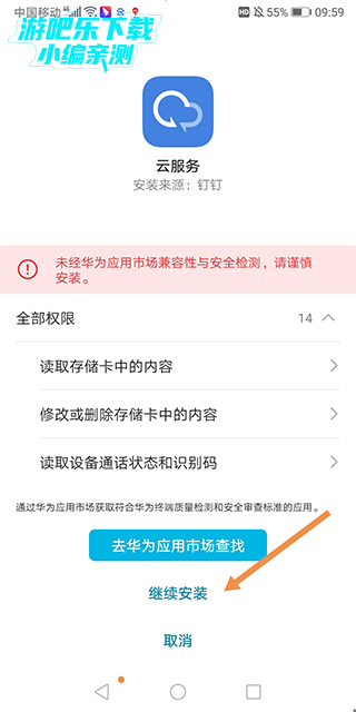 1、首先在本站免费下载该应用安装包后就可以像其它软件一样在华为手机上安装,安装时会跳出华为应用市场检测机制,可以忽悠点击【继续安装】即可