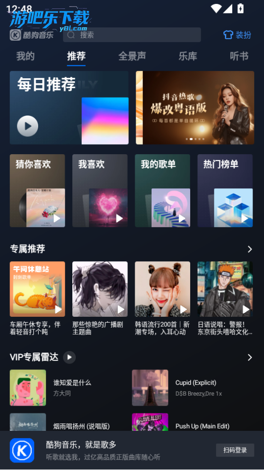本站下载进入酷狗音乐车载版软件,点击扫码登录