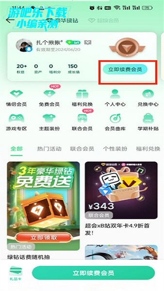 进入会员专区以后,点击上方的“立即续费会员”,如图所示;