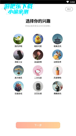 2、软件根据你的选择自动推送几款精美桌面,如不需要可以点击右上角跳过
