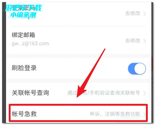 3、在账号与安全界面,选择页面的“账号急救”的选项。