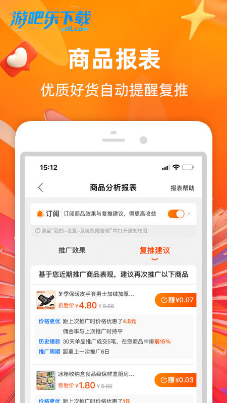 2、新增商品分析报表和复推建议,推广效果清晰可见,优质货品自动提醒。