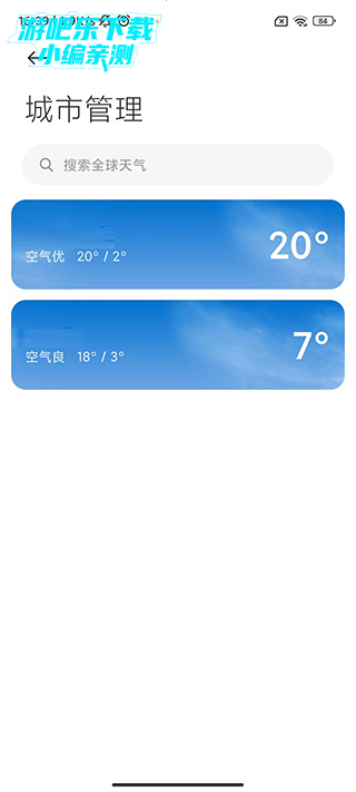 2、进入添加城市管理界面后,点击上方的搜索框输入我们想要添加的常驻城市名称