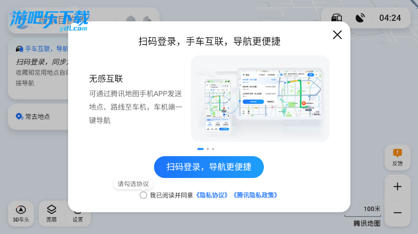 4、使用腾讯地图app扫码登录或者使用微信扫码登录均可和手机互联。