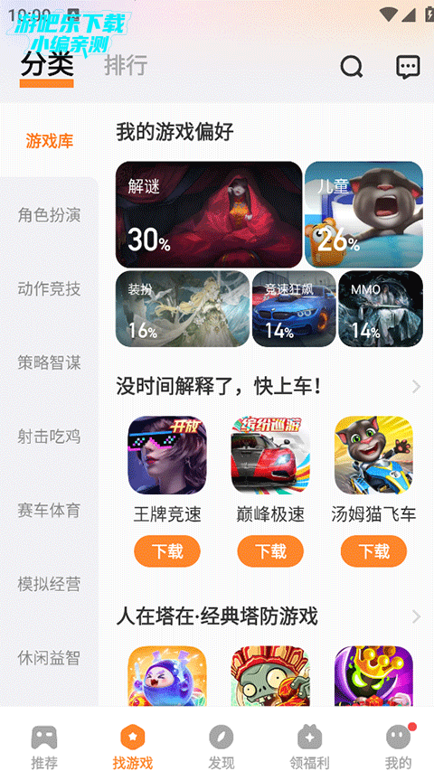 2、除了可以在首页找到自己喜欢的游戏,大家还可以根据自己的喜好,选择喜欢的类型。