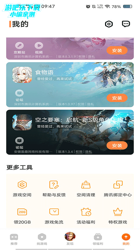 5、在界面-我的选项栏往下滑,还有更多工具,大家可以快速进入游戏空间。
