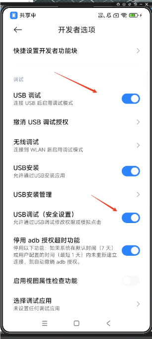 1、按照软件内的提示,打开开发者模式,打开usb调试(各机型开启usb调试方法可参考本文档下方XX设备投屏),有些机型需要额外打开 usb调试下的安全设置,如小米手机;