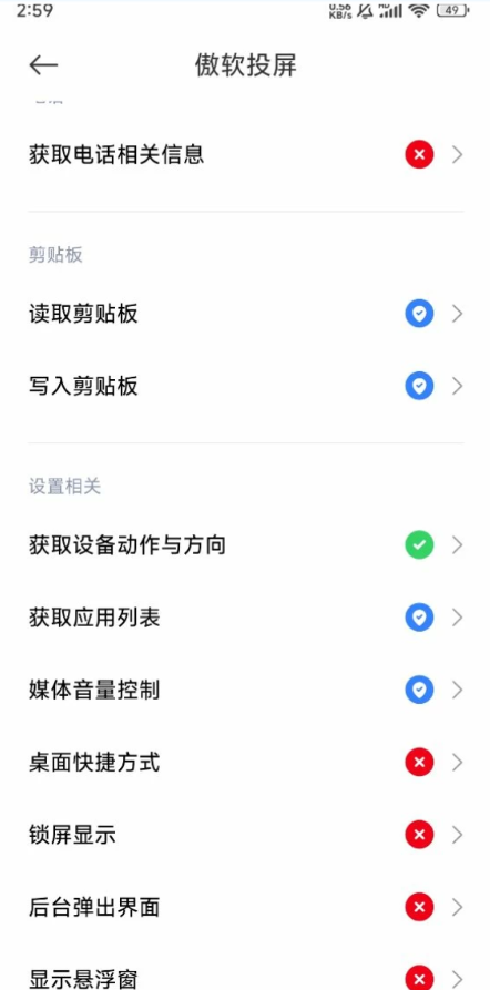 ①排除WIFI网络不稳定因素后,一般投屏中途断开跟部分安卓设备系统设置相关,部分系统会自动关掉一直在后台运行的程序服务,需要手机开启相应权限才能稳定投屏。如检查软件悬浮窗权限是否开启,一般在应用设置—>傲软投屏—>权限管理—>其他权限—>悬浮窗—>允许