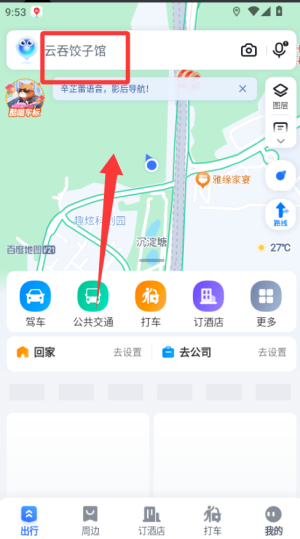 1、打开app后允许位置权限,在搜索框输入目的地或直接语音说出地址。