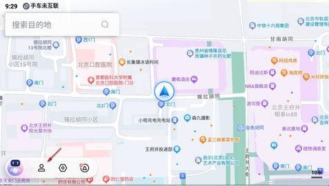 1、打开百度地图车机版app,点击首页左下角的齿轮状按钮。