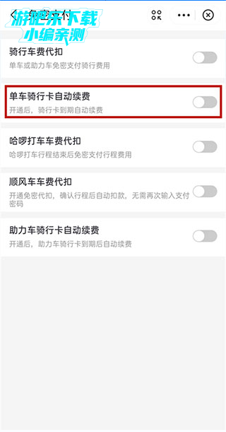 3、将单车骑行卡自动续费右侧按钮关闭即可。